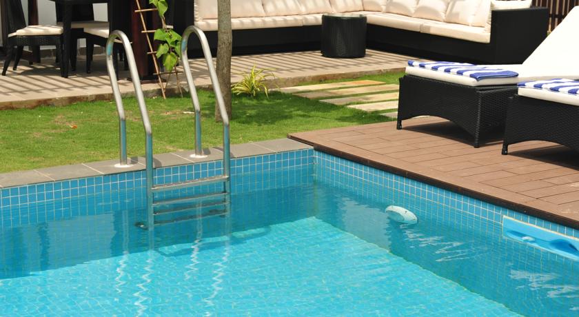Ngoài ra villa Phú Quốc cho thuê có 1 hồ bơi ngoài trời riêng có ghế nằm tắm nắng chắc chắn sẽ mang lại cho gia đình bạn kỳ nghỉ vui vẻ và ý nghĩa nhất.( Sử dụng chung cho căn villa lớn 18pn như hình trong bài viết: gồm 2 căn villa 9pn).