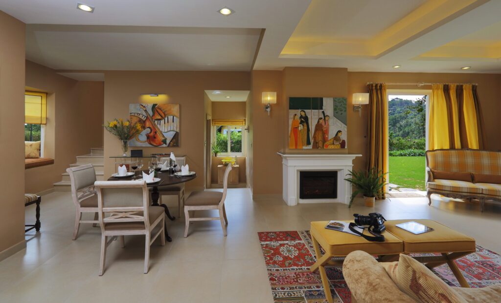 - Phòng khách được trang bị lò sưởi và TV truyền hình đa phương tiện
