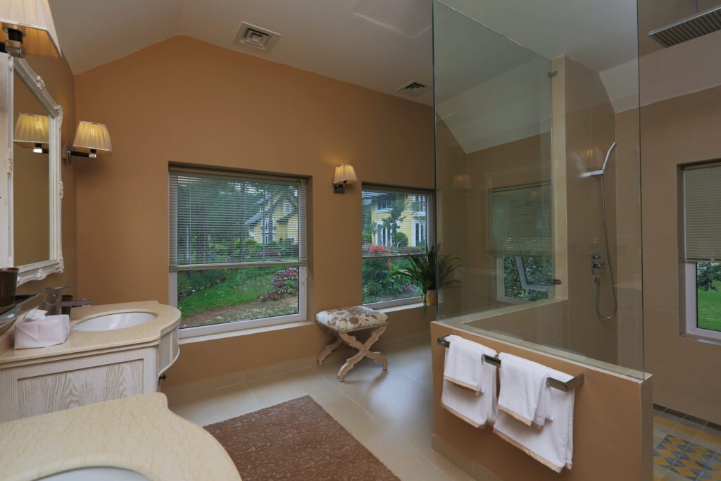 - Phòng tắm rộng rãi với phòng tắm hơi, tắm mưa, chậu rửa đôi và các tiện nghi sang trọng khác