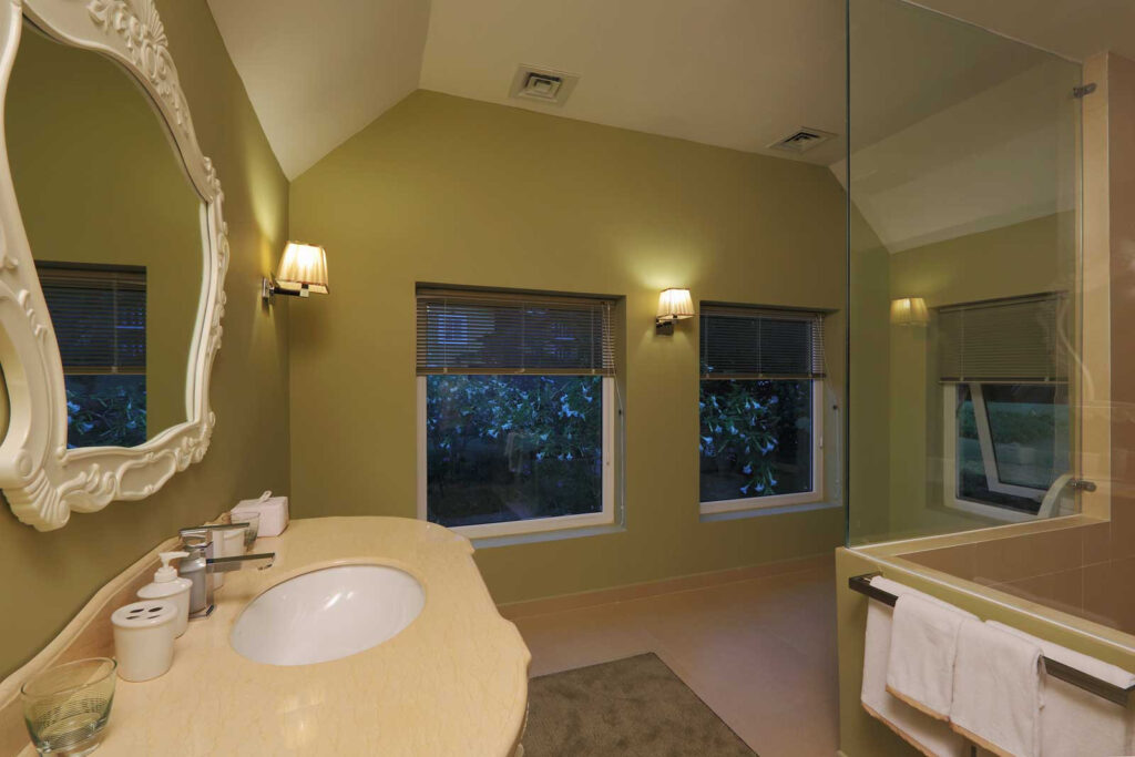 - Phòng tắm rộng rãi với phòng tắm hơi, tắm mưa, chậu rửa đôi và các tiện nghi sang trọng khác