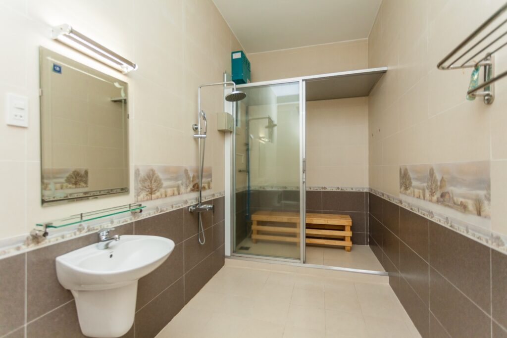 – Phòng bếp rộng rãi, đầy đủ đồ dùng nấu bếp: lò vi sóng, lò nướng, nồi cơm điện, bình đun siêu tốc, tủ lạnh, chén bát…