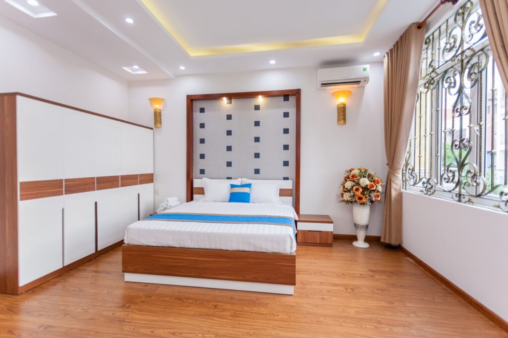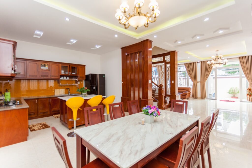 – Thiết kế: Diện tích sử dụng trên 400m2 với 04 phòng ngủ có giường đôi và 3 nệm dự phòng, đồ nội thất cao cấp, sang trọng tiêu chuẩn khách sạn; phòng khách sang trọng và phòng bếp đầy đủ trang thiết bị. Các phòng đều có toilet riêng biệt mang lại sự tiện nghi. 4 Phòng tắm đầy đủ khăn và đồ dùng cá nhân,