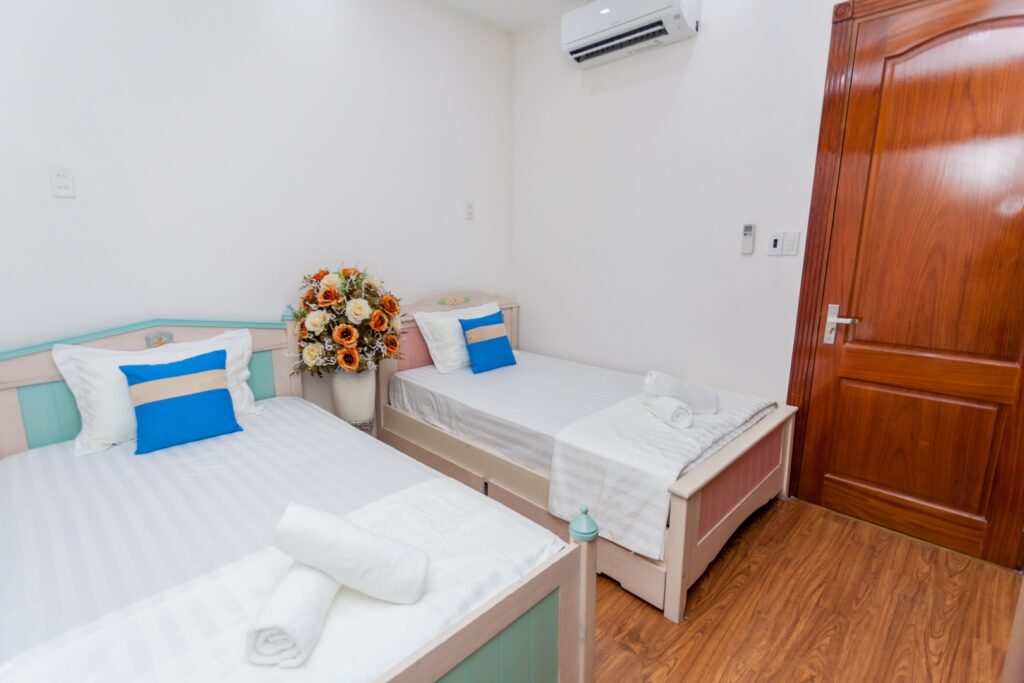 – Thiết kế: Diện tích sử dụng trên 300m2 với 04 phòng ngủ có 5 giường đôi và 3 nệm dự phòng, đồ nội thất cao cấp, sang trọng tiêu chuẩn khách sạn; phòng khách sang trọng và phòng bếp đầy đủ trang thiết bị. Các phòng đều có toilet riêng biệt mang lại sự tiện nghi. 4 Phòng tắm đầy đủ khăn và đồ dùng cá nhân,