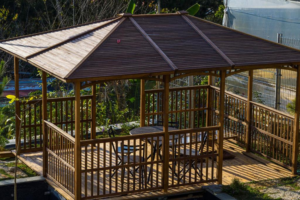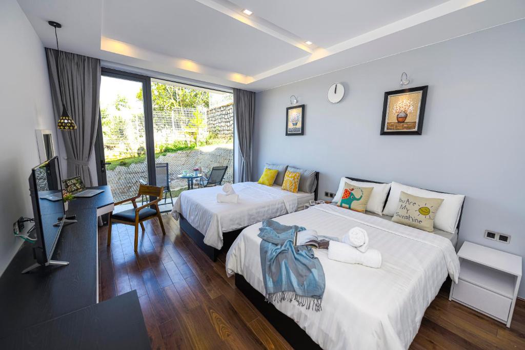 ? Cơ cấu bao gồm 5 phòng ngủ tiêu chuẩn 16 khách ( 2 đơn, 3 đôi ), phòng khách và bếp view ôm trọn núi đồi