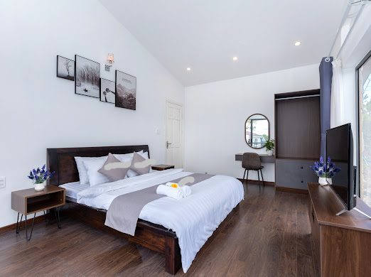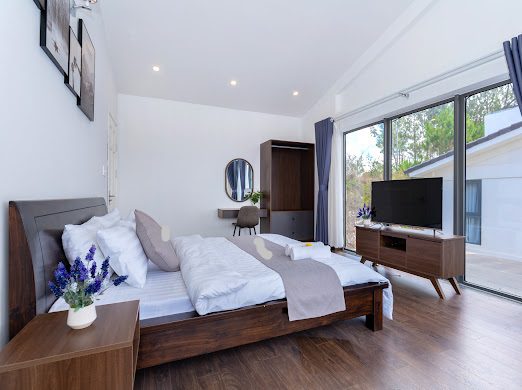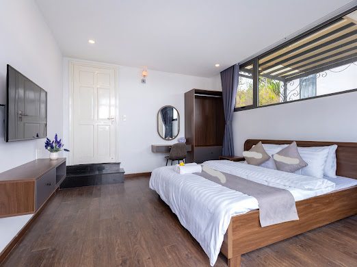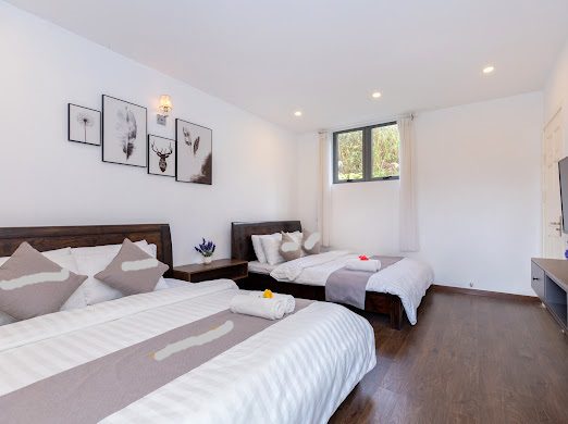 - Villa Đà Lạt bao gồm 4 phòng ngủ (3 phòng đơn + 1 phòng 2 giường -tổng cộng 5 giường ngủ)