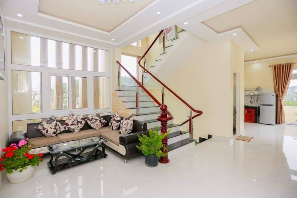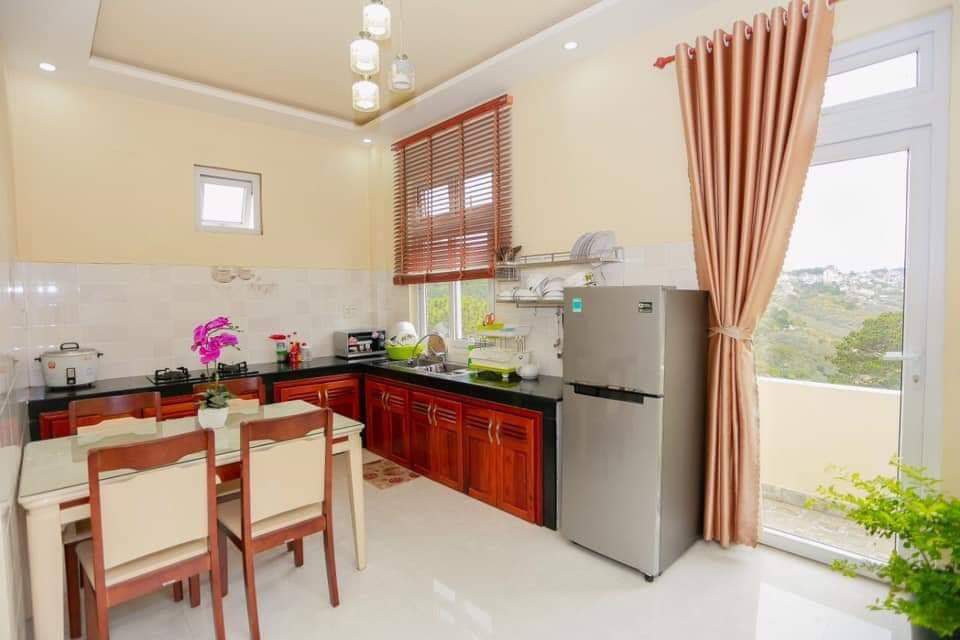 ☘️Phòng khách và bếp đầy đủ tiện nghi, Sân rộng thích hợp cho trẻ em vui chơi, tiệc BBQ và teambuilding, view rừng thông, các phòng đều có cửa sổ rộng và thoáng.