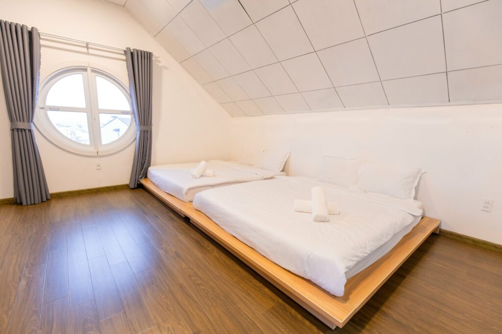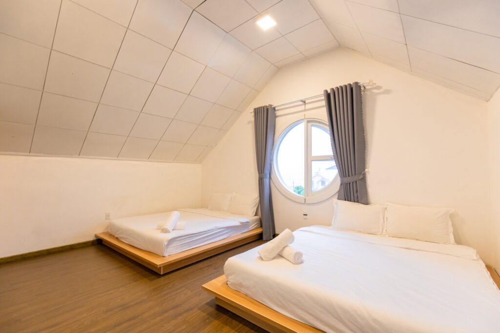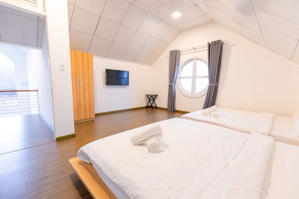 Tầng áp mái: 2 phòng đôi + wc trong