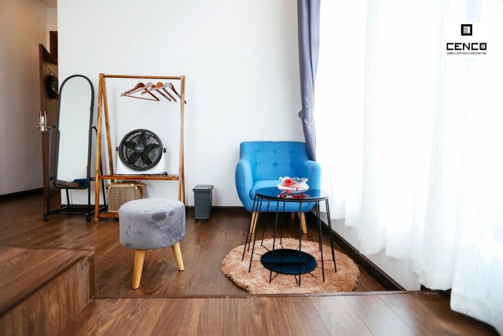 – Tầng trệt ( 1 đôi + 1 đơn đều có cửa sổ và hướng nhìn ra ngoài và tollet riêng mỗi phòng nằm trong không gian gần bếp + khách + sân sau. )