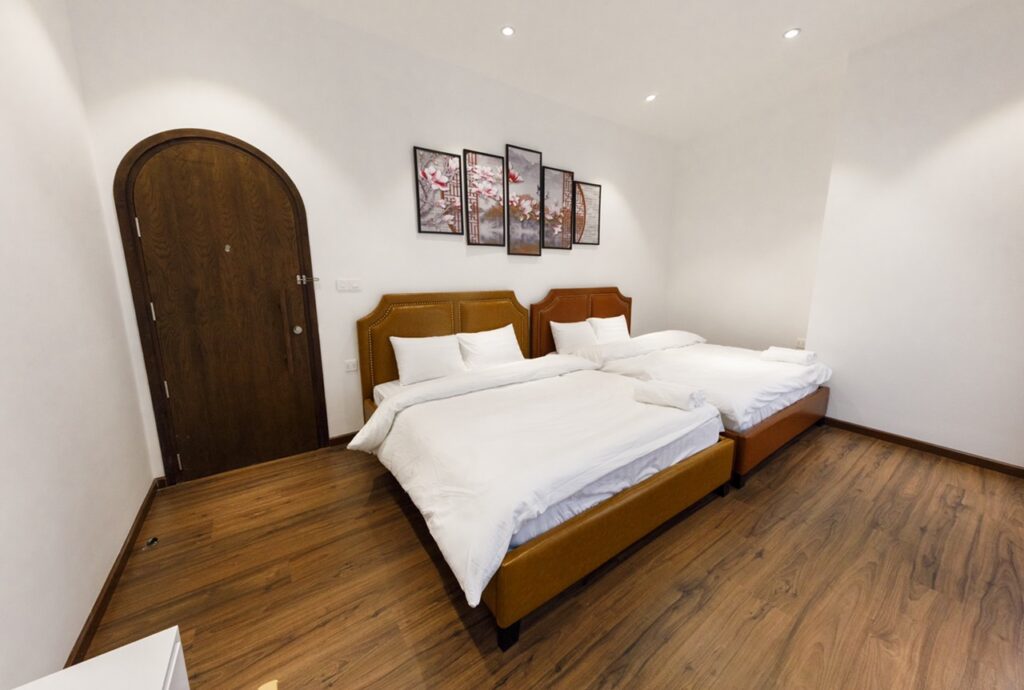 ? Gồm 4 phòng ngủ: 3 Phòng 1 giường (1m8) và 1 phòng 2 giường (1m6) – 5wc