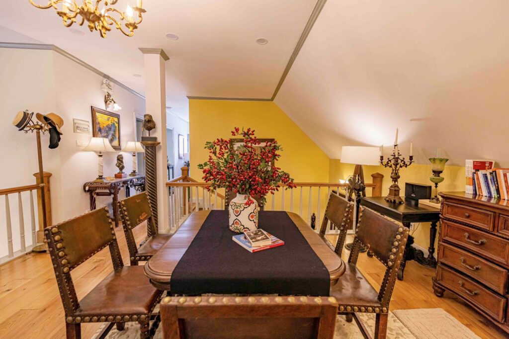 – Sàn deck ăn uống ngoài trời trên cao thiết kế cho 30 khách, Vừa nhâm nhi vừa ngắm cảnh 1 bên rừng hồ tuyền lâm, 1 bên thành phố dưới tán cây xanh từ trên cao.