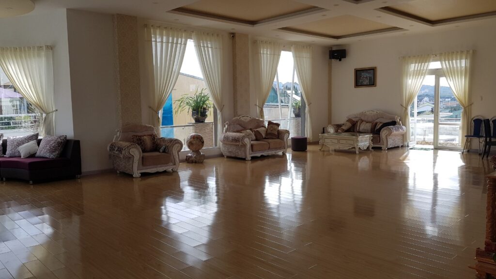 Có phòng xông hơi. Matxa. Có thể chia làm 2 đoàn từ 8 đến 10 người theo tầng. Có lối đi riêng biệt. Có sân đậu xe oto thoải mái