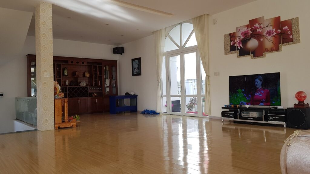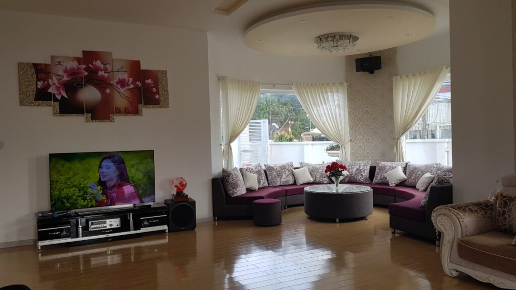 ✔️ Phòng khách 200m + Bếp thông với nhau tạo nên một không gian rộng rãi, thoáng đãng cùng hệ thông Smart TV – Karaoke cực kì hiện đại