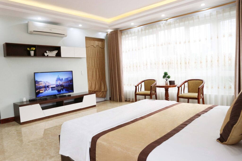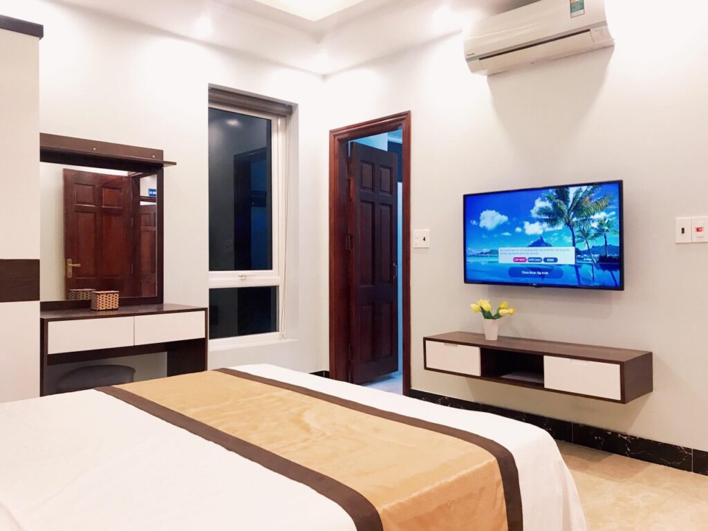 + Đầy đủ tiện nghi: tivi, điều hòa, nóng lạnh, ấm siêu tốc, may giặt, tủ lạnh…