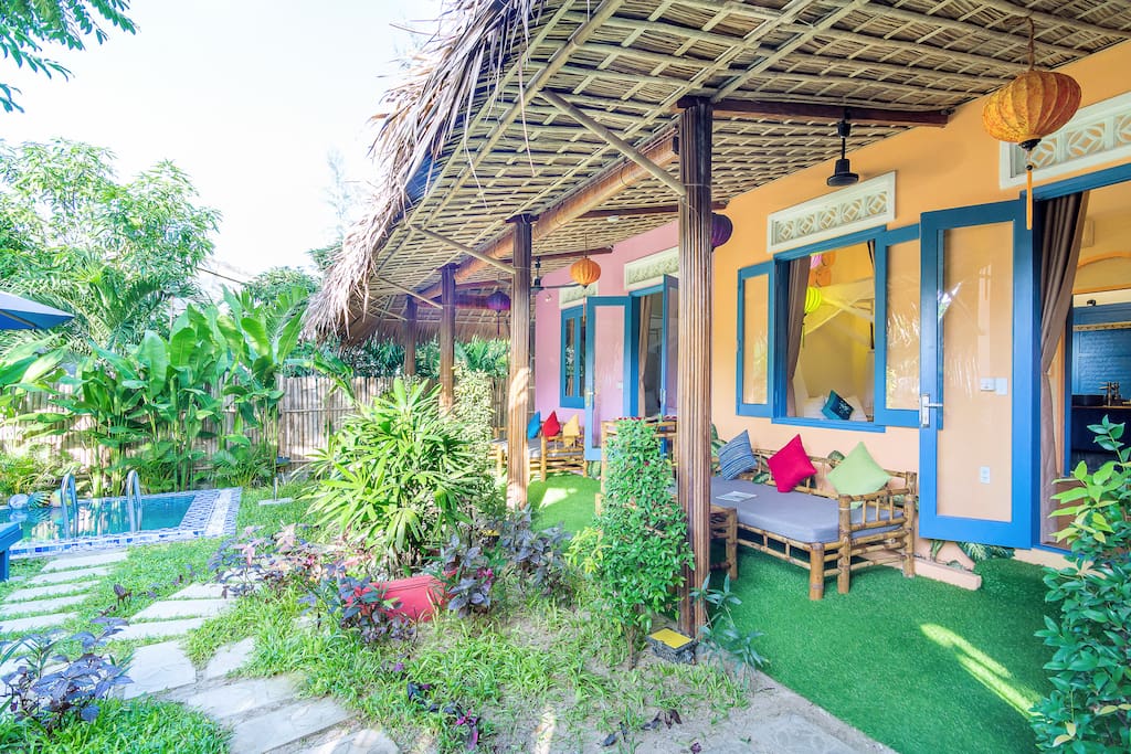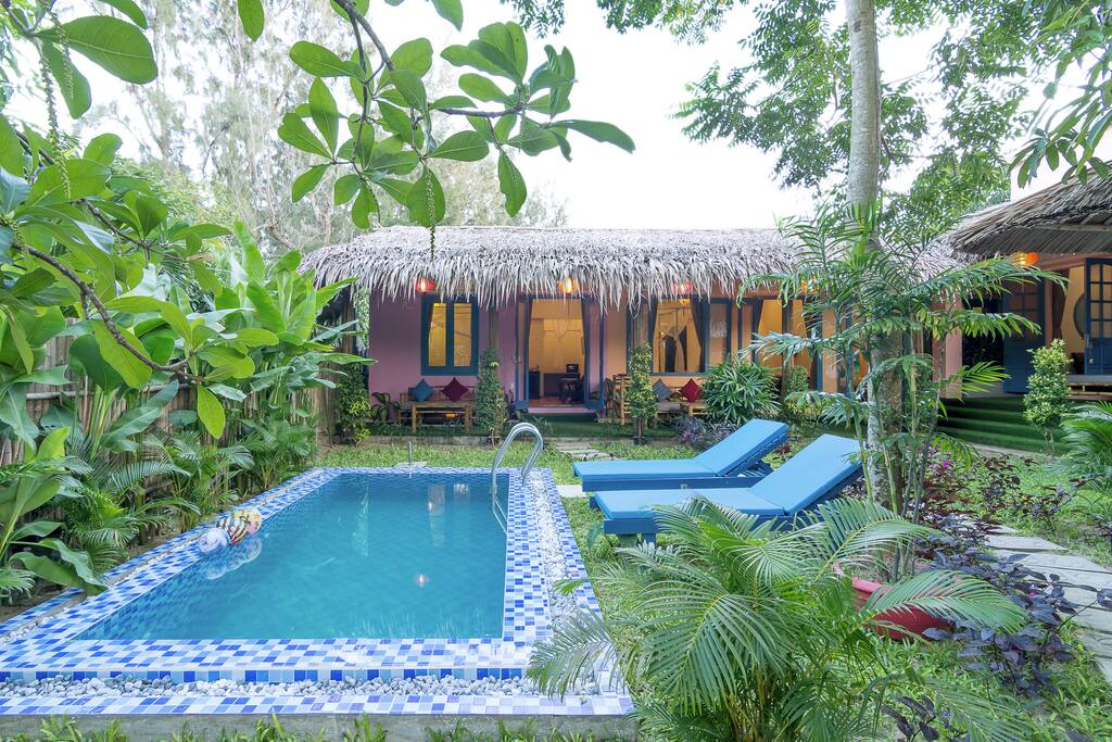 - Có tất cả 4 phòng 6 giường ngủ trang nhã hiên đại yên bình nằm trong khuôn vườn 400m2 bạn có thể đắm chìm trong làn nước trong veo mát mẻ của hồ bơi ngay tại vườn