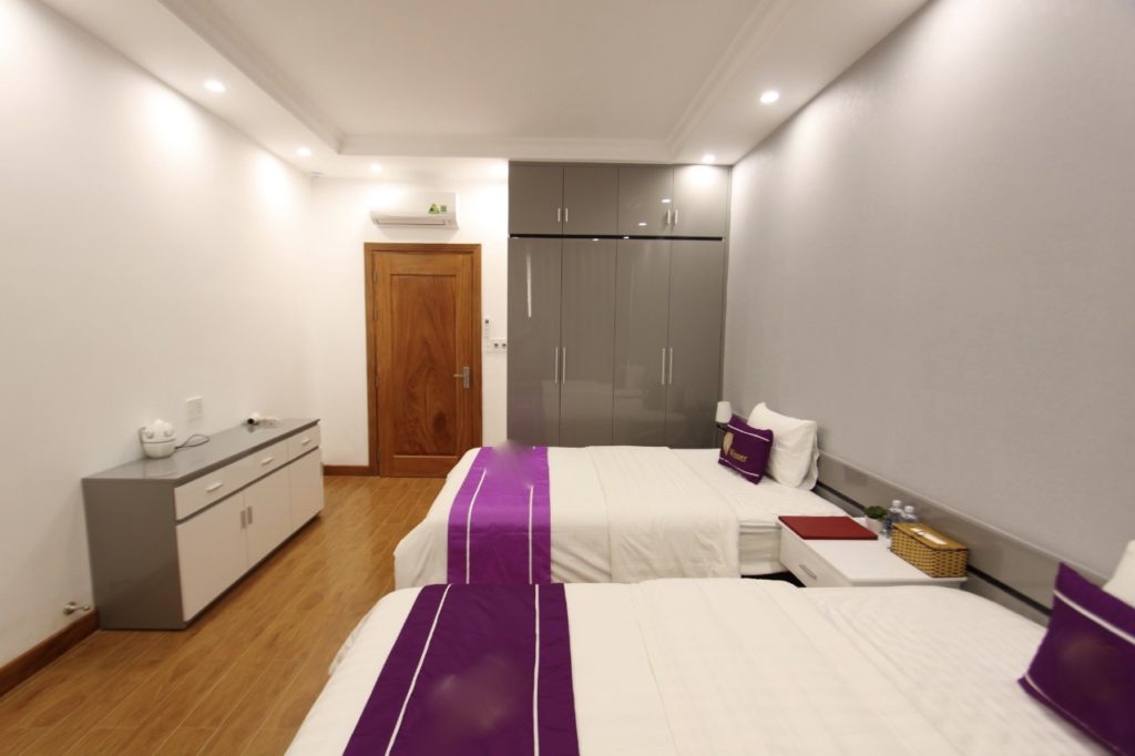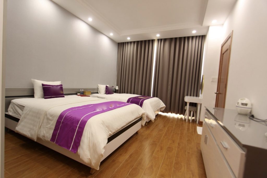 - Mỗi phòng ngủ được trang bị đầy đủ Tivi, truyền hình cáp, internet tốc độ cao. Giườn queen size: 1m8 x 2m, nệm dự phòng 1m6