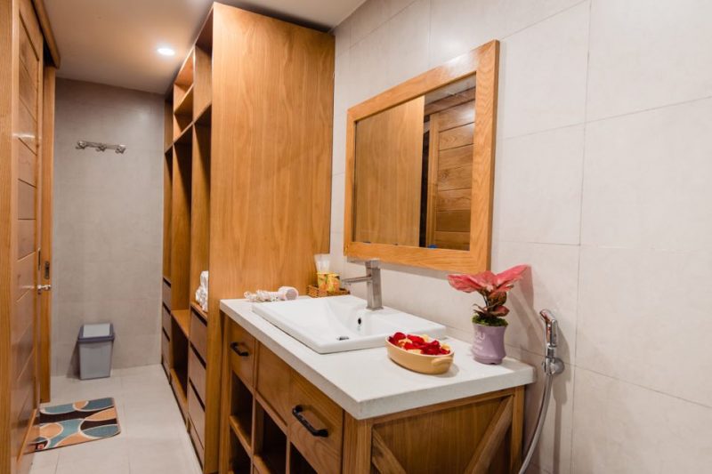 - TV màn hình phẳng, máy giặt, điều hòa, khăn tắm, dầu gội.