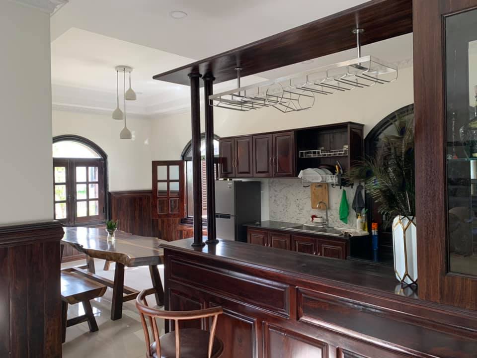 – 01 nhà bếp đầy đủ tiện nghi với bàn ăn bằng gỗ dài đủ chỗ cho 15 khách ++.