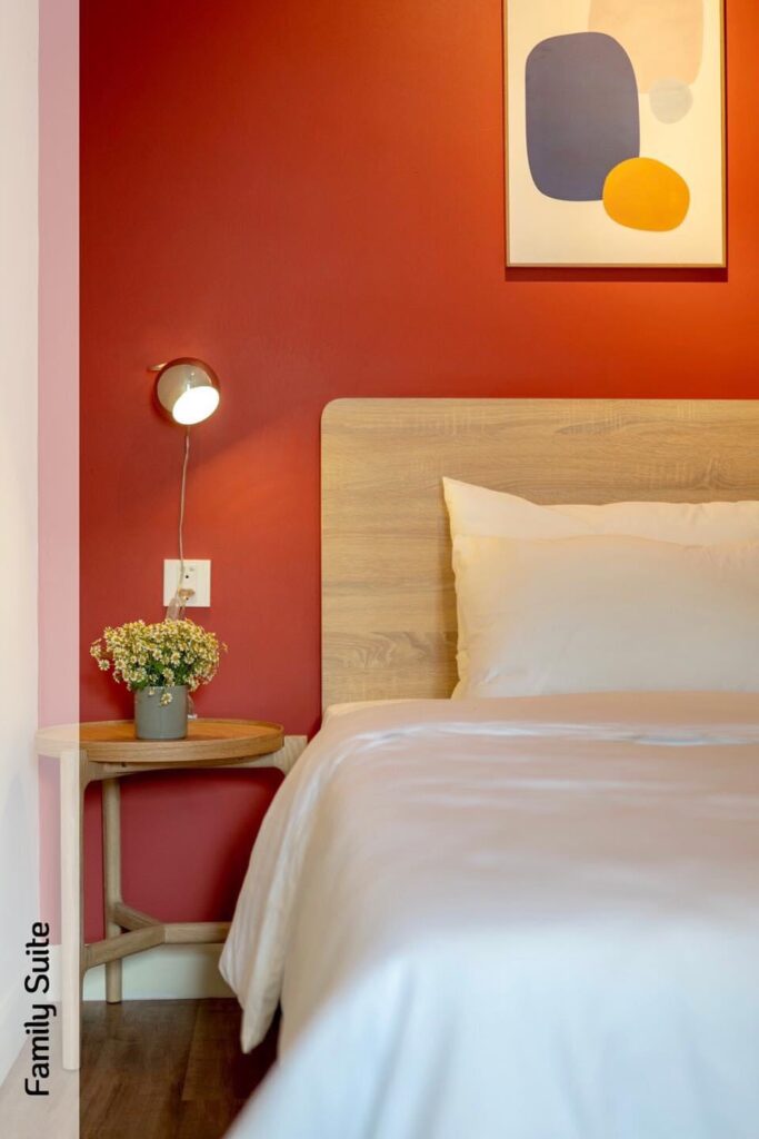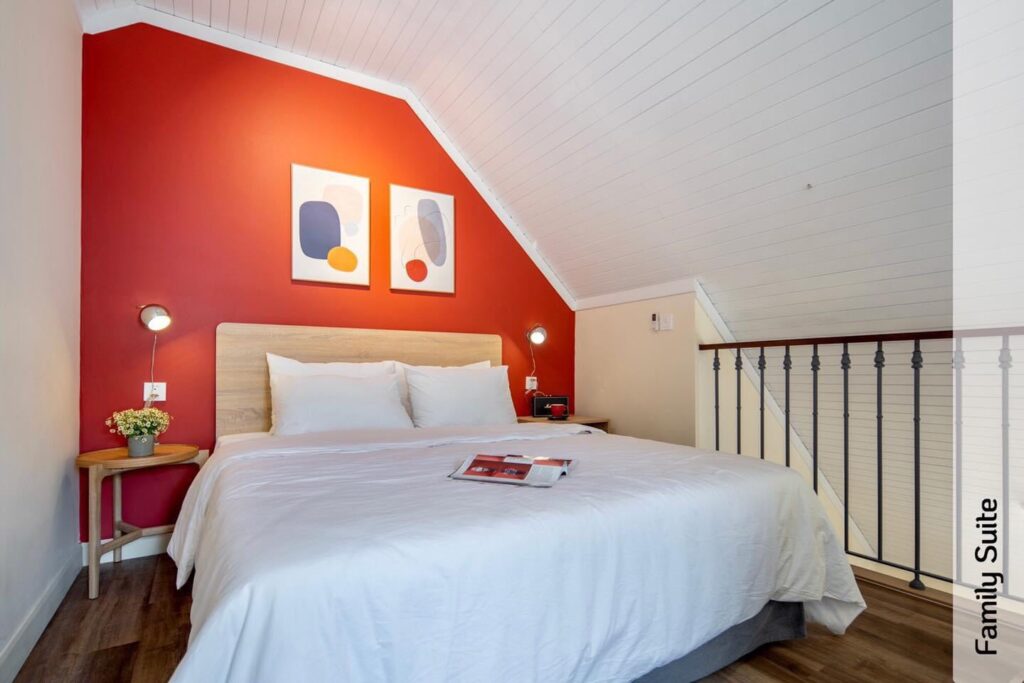 – tầng 1 có 3 phòng: Group 6 Rooftop cho 6 người; Family Suite Balcony cho 2-4 người; Family Suite cho 2-4 người; 3 phòng này dùng nhà vệ sinh trung tâm của phòng.