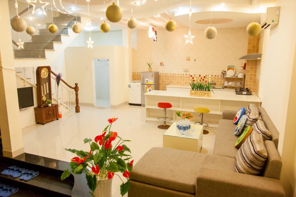 – Phòng bếp hiện đại, đầy đủ đồ dùng nấu bếp: lò vi sóng, lò nướng, nồi cơm điện, bình đun siêu tốc, tủ lạnh, chén bát…