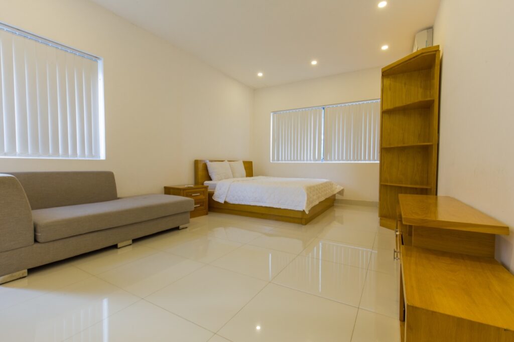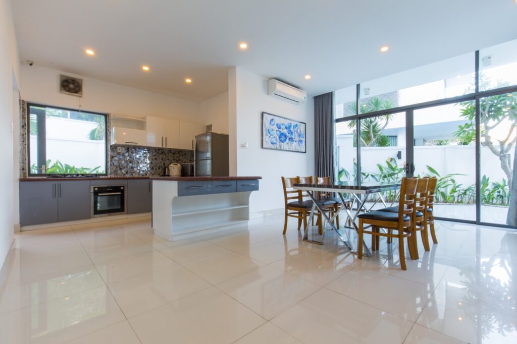 – Phòng bếp rộng rãi, đầy đủ đồ dùng nấu bếp: lò vi sóng, lò nướng, nồi cơm điện, bình đun siêu tốc, tủ lạnh, chén bát…