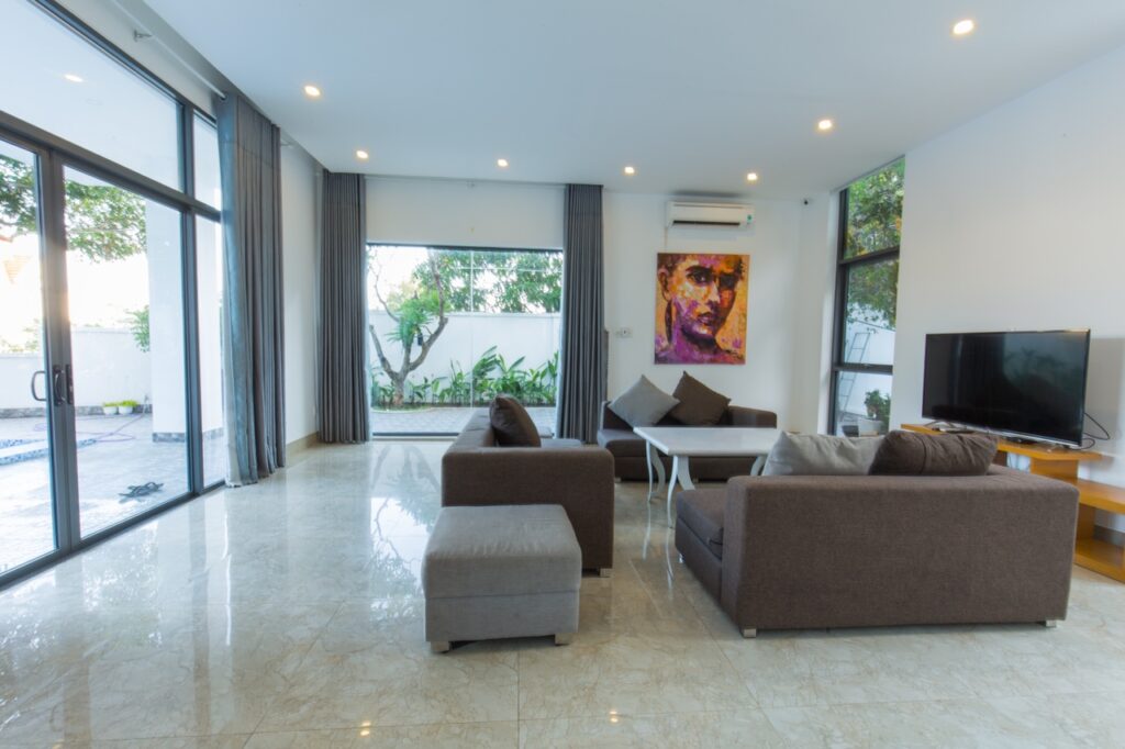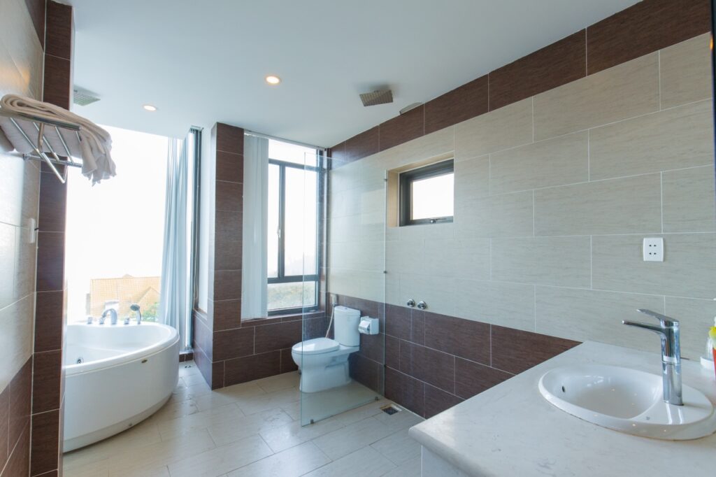 – Thiết kế: diện tích sử dụng 800m2 với 05 phòng ngủ trong đó có 4 phòng 01 giường đôi lớn và 1 phòng ngủ tập thể (kê nệm), phòng khách sang trọng và phòng bếp đầy đủ tiện nghi. Các phòng đều có toilet riêng biệt mang lại sự tiện nghi. 6 Phòng tắm đầy đủ khăn và đồ dùng cá nhân.