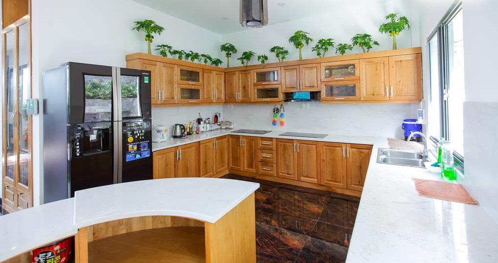 – Phòng bếp rộng rãi, đầy đủ đồ dùng nấu bếp: lò vi sóng, lò nướng, nồi cơm điện, bình đun siêu tốc, tủ lạnh, chén bát…