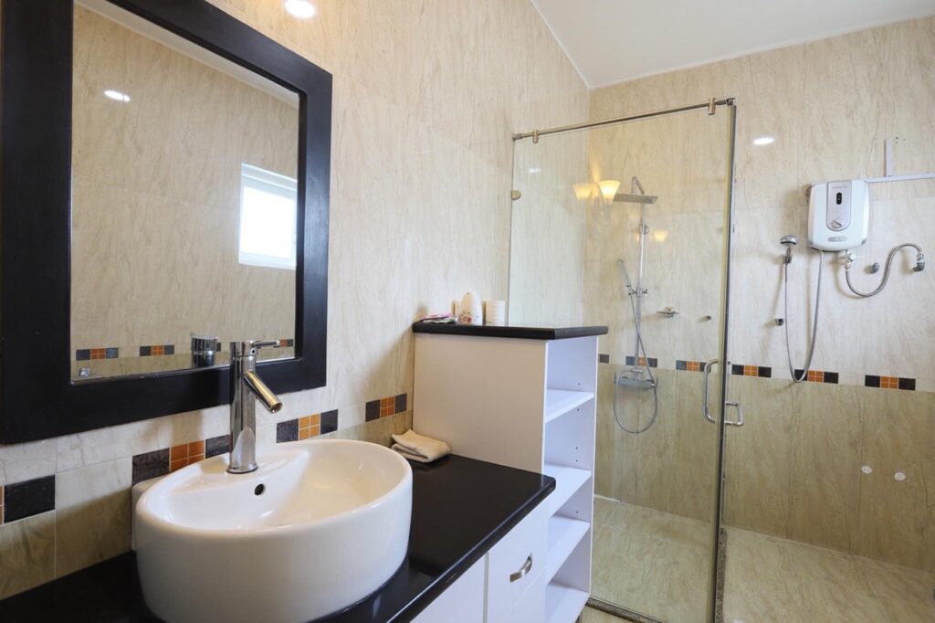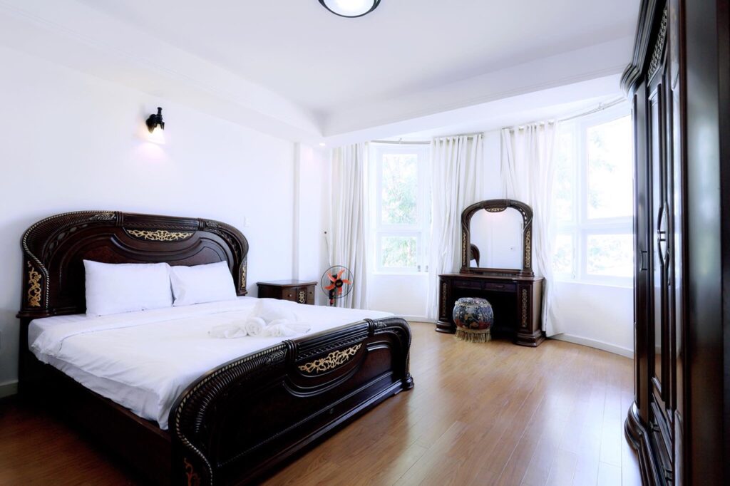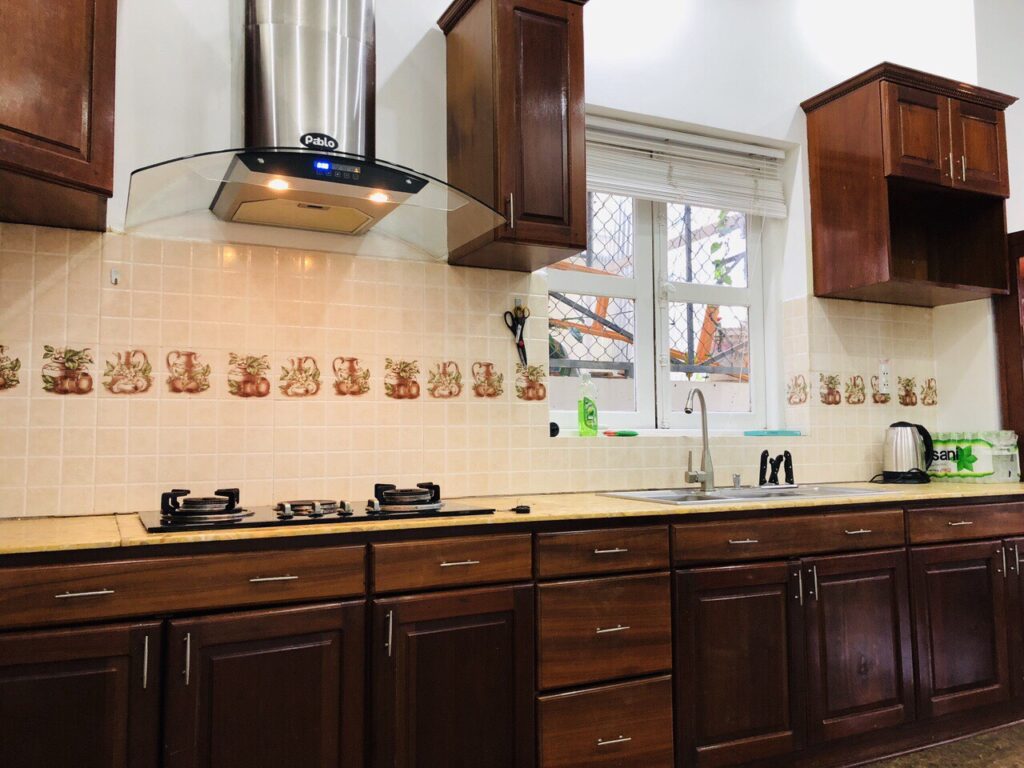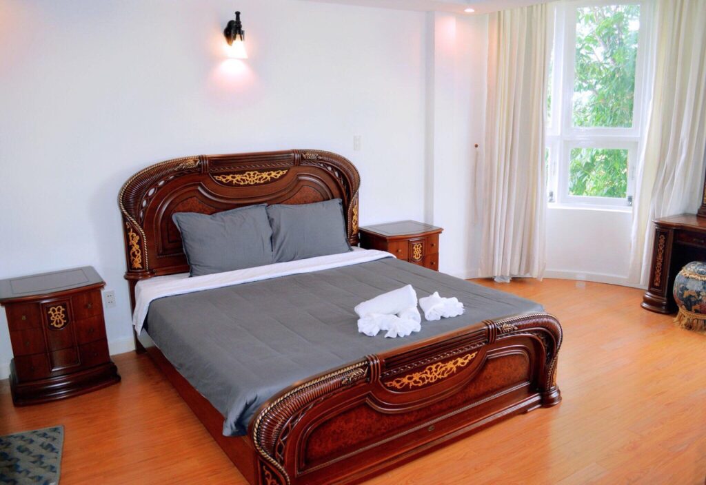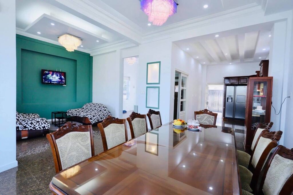 – Thiết kế: Villa có 4 phòng ngủ, 3 toilets (1 toilet riêng, 2 toilet chung), 1 phòng khách và 1 bếp sinh hoạt, khuôn viên BBQ