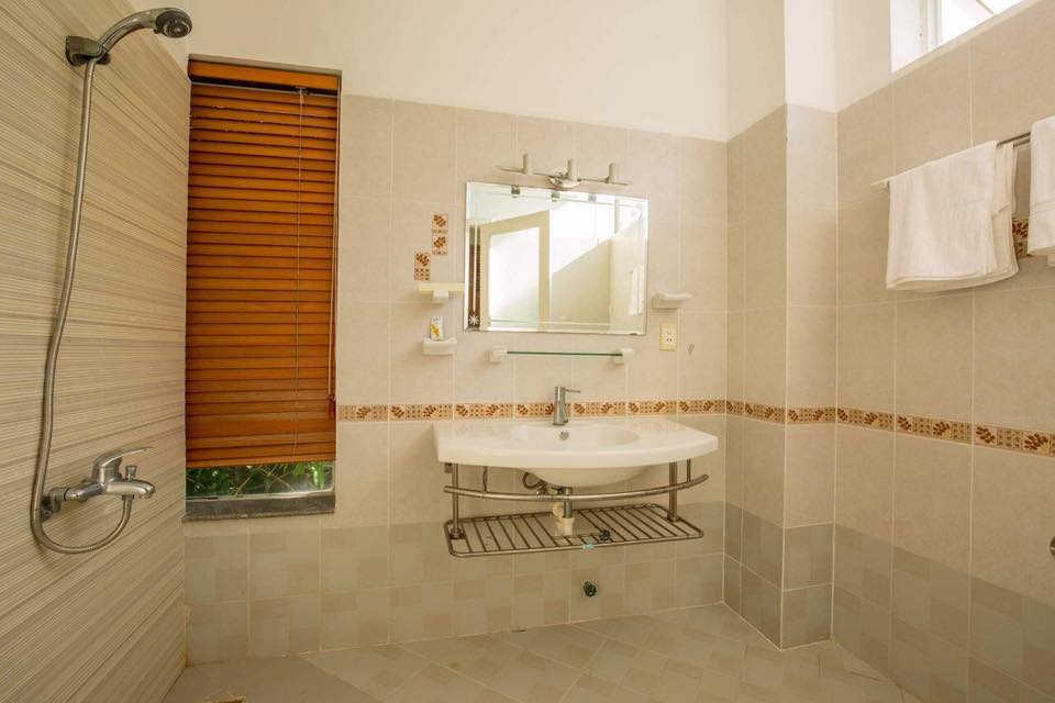 – Thiết kế: Diện tích sử dụng trên 500m2 với phòng khách, 06 phòng ngủ – 8 giường đôi và nệm dự phòng, đồ nội thất cao cấp, sang trọng tiêu chuẩn khách sạn; 7 phòng tắm đầy đủ khăn và đồ dùng cá nhân, với bồn tắm và tắm đứng.
