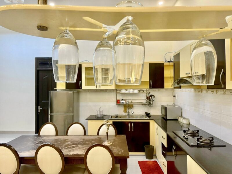– Bêp đầy đủ dụng cụ nấu ăn, bàn ghế BBQ ngoài trời, bếp nướng, than củi.