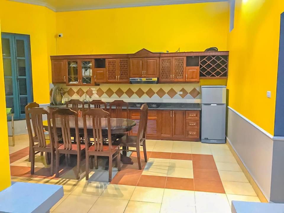 ? Phòng bếp đầy đủ tủ lạnh, bếp nấu,bếp từ, bát đũa cho 20 người, bếp nướng BBQ ngoài trời (free 2kg than, nếu dùng thêm khoảng 50-100k), bàn ghế ngồi ăn ngoài trời. - Tầng 1 : phòng khách, phòng bếp, 1 WC