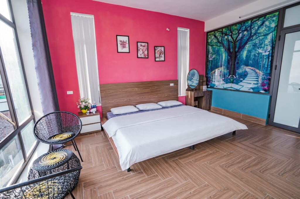 - tầng 2 : 4 phòng ngủ khép kín (giường 2m2*2m)