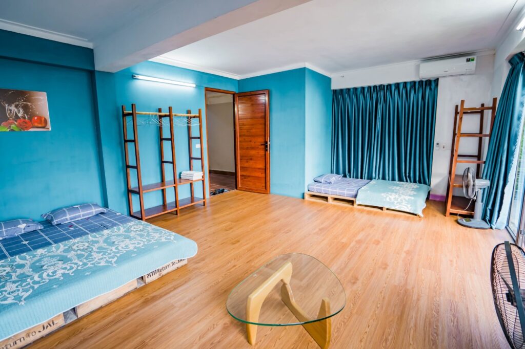 ? 4 phòng ngủ khép kín, điều hòa, nóng lạnh, và 1 phòng tập thể… 7 WC đầy đủ tiện nghi , có thêm khoảng 10 đệm phụ nếu đoàn đông