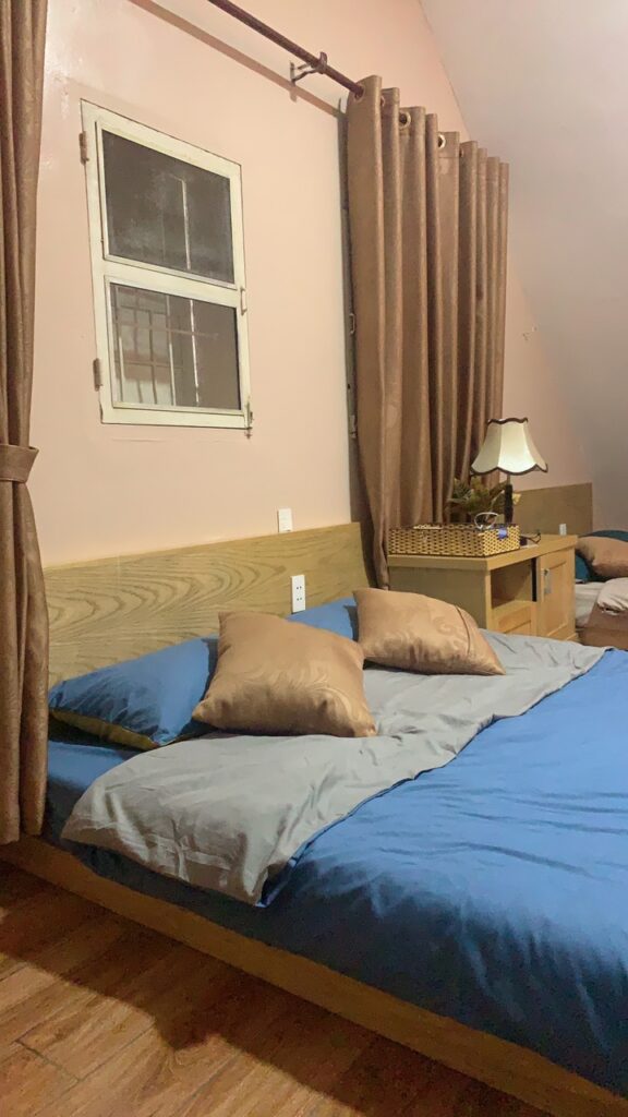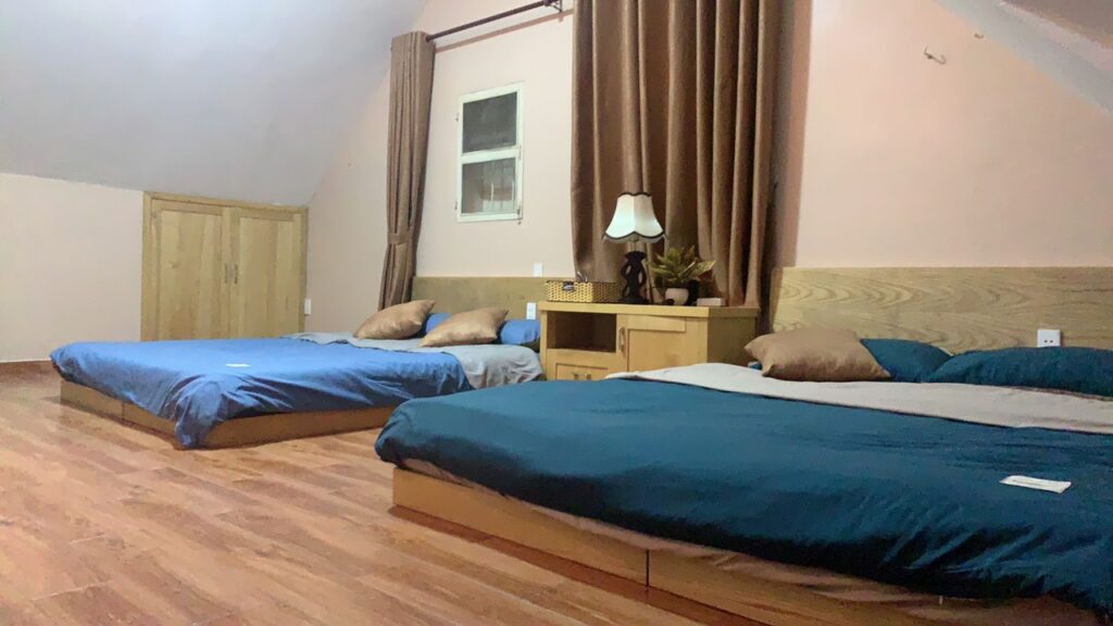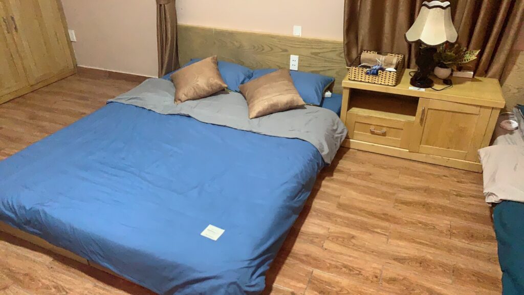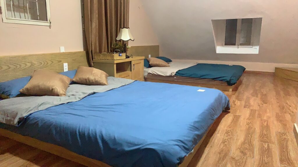 -các phòng ngủ đều bố trí đầy đủ giường, tủ, chăn ga, ti vi, đèn ngủ, đệm điện cho mùa đông.