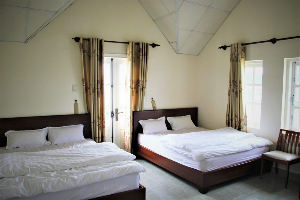 – Thiết kế: 08 phòng ngủ, trong đó có 3 phòng 1 giường cho 2 người, 4 phòng 2 giường (1 giường đôi và 1 giường đơn cho 3 khách), 1 phòng 2 giường cho 4 khách và 1 phòng tập thể cho 6 khách, toilet riêng từng phòng, 1 phòng khách, 1 phòng bếp.