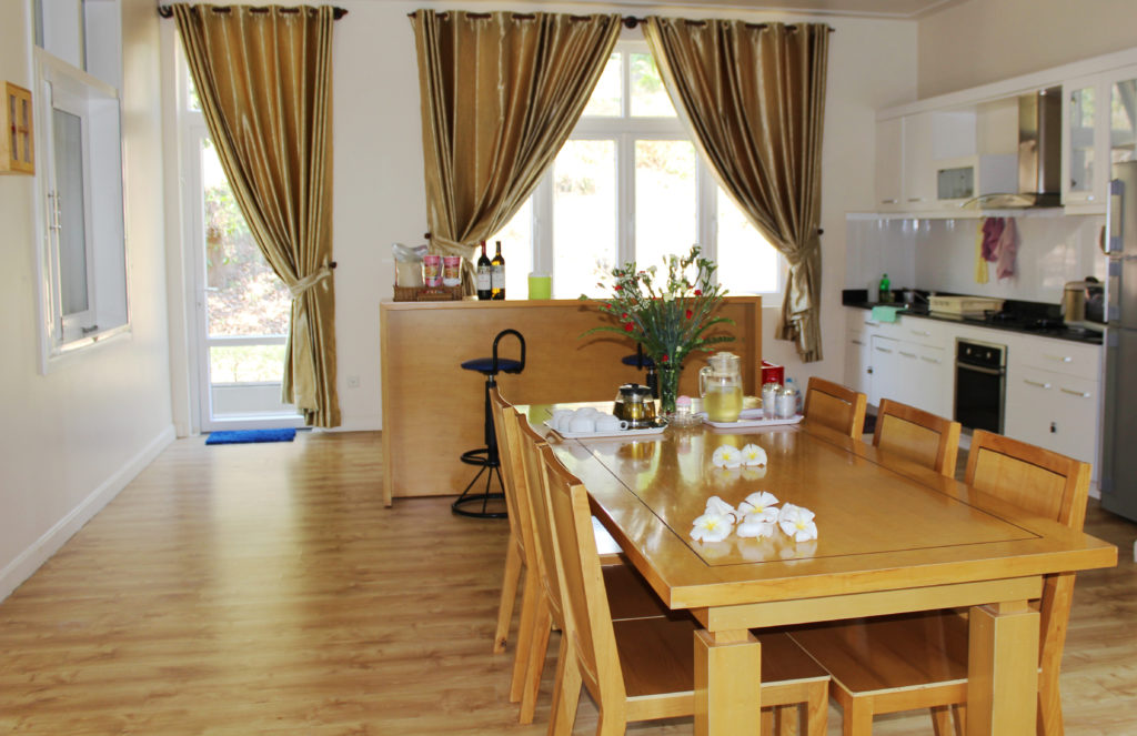 Villa có diện tích trên 400m2 với 1 phòng khách, 1 nhà bếp, 4 phòng ngủ… thích hợp cho các gia đình, nhóm bạn hay gia đình nhỏ từ 10– 12 người.