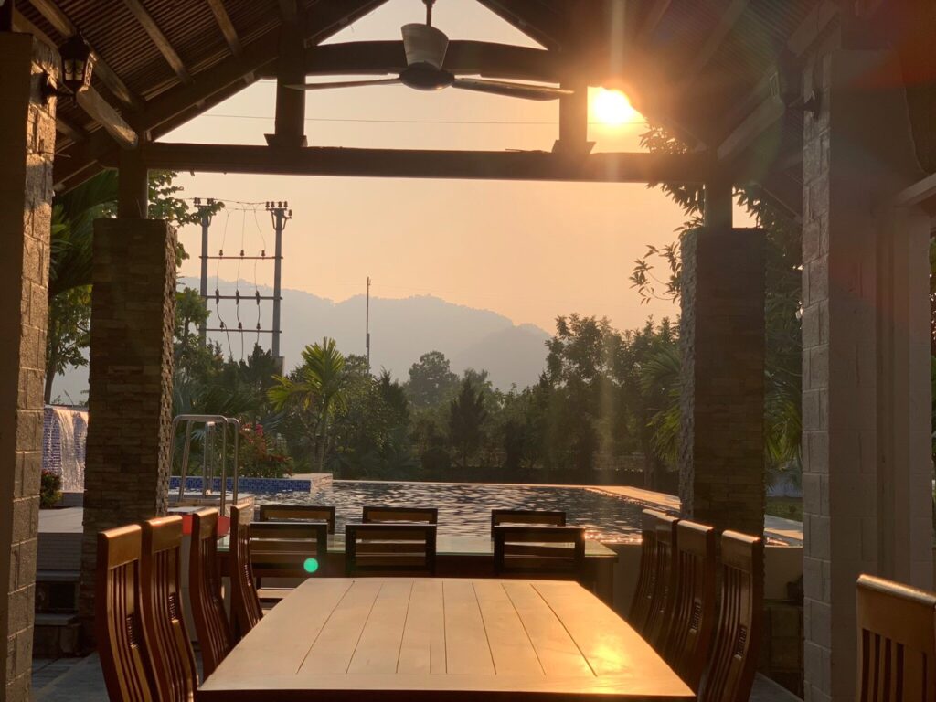 ?? sân nướng BBQ cạnh bể bơi, có bàn ghế,sử dụng bếp nướng ngoài trời