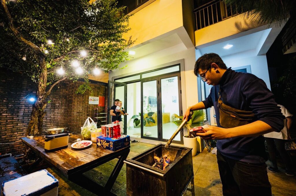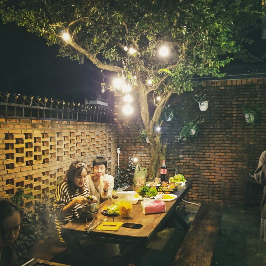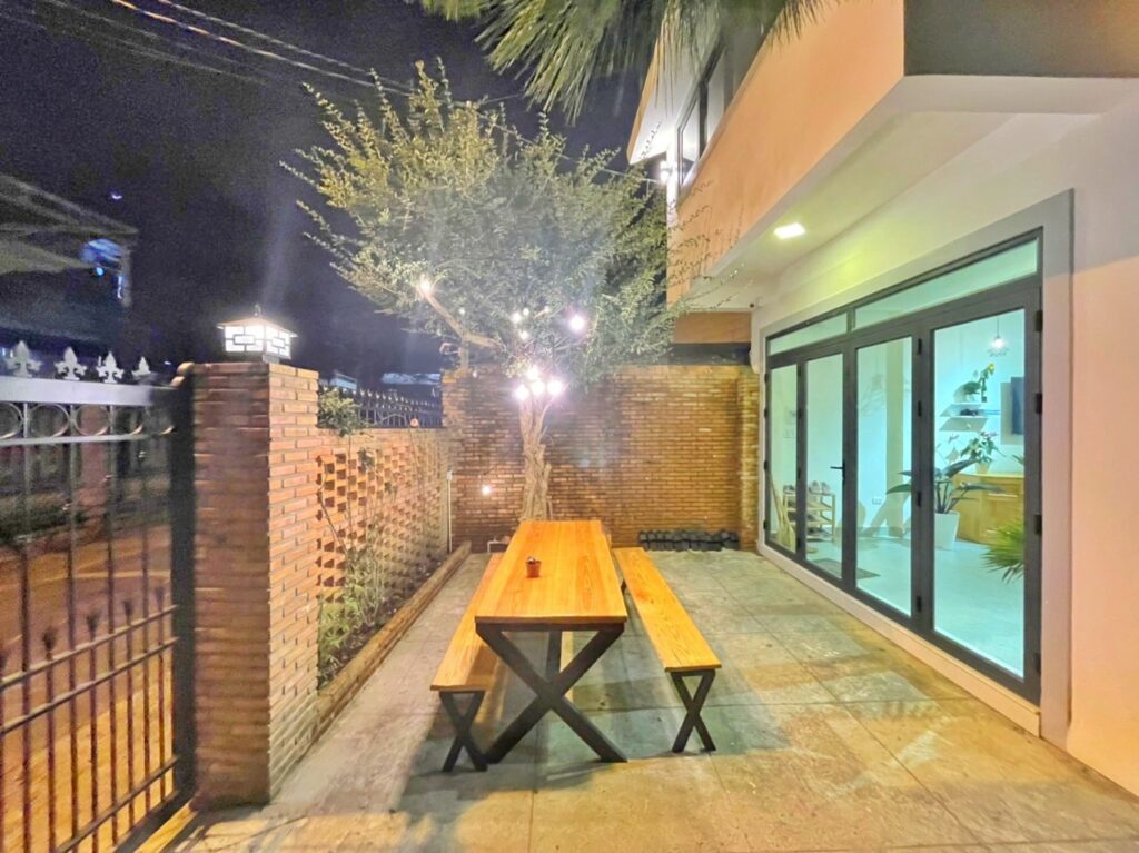 - Sân vườn BBQ, bếp với đầy đủ dụng cụ nấu nướng.