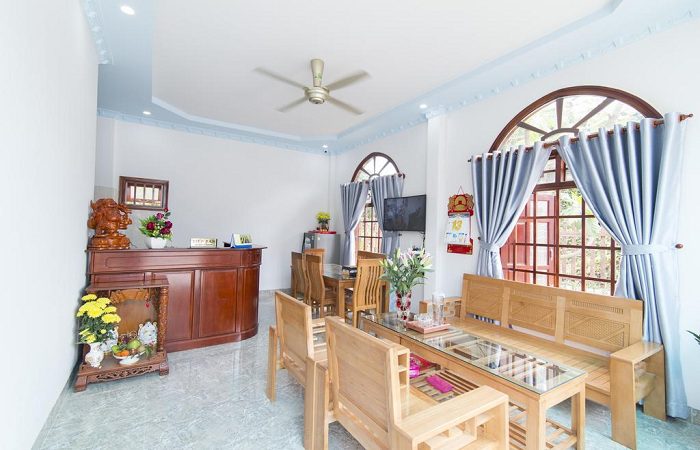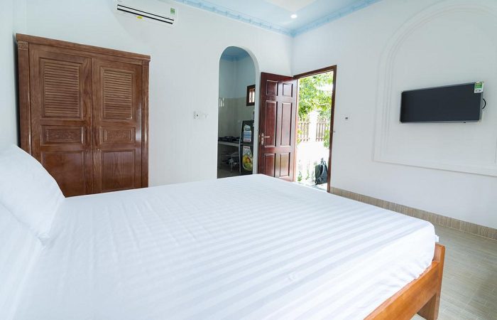 – Bungalow gia đình: có 2 phòng ngủ, giường cỡ queen, có view nhìn ra vườn, có tiện nghi cao cấp