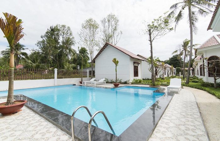 – Bungalow hướng hồ bơi: có 1 giường đôi, view nhìn ra hồ bơi, có tiện nghi cao cấp