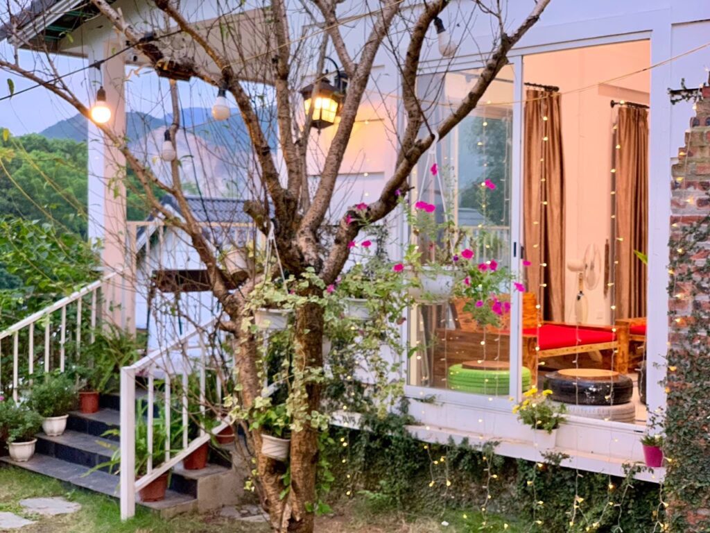 – Bancon tầng 2 view núi cực rộng, có thể làm tiệc nướng trên đó cho cả đoàn;